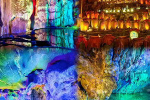 历经两亿五千万年形成的地下奇观。在山势雄竣的大口岩溶洞中, 分三层游览,面积达5.3万平方米。天然的洞口宽敝雄伟,置身其中,一种“别有洞天”的感觉油然而生。
