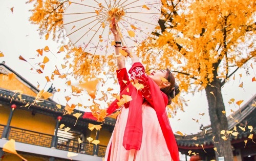 秋风吻尽银杏时,邂逅醉美帽子峰。