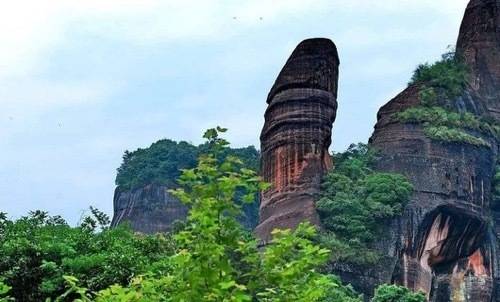 阳元山景区,其中【阳元石】,俗称为"祖石",其逼真似男性阳器,被称为"天下第一奇石"。