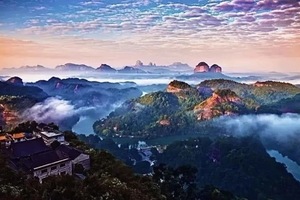 13:30世界地质公园——【丹霞山】丹霞山是世界“丹霞地貌”命名地。丹霞山由680多座顶平、身陡、麓缓的红色砂砾岩石构成,“色如渥丹,灿若明霞”,以赤壁丹崖为特色。据地质学家研究表明:在世界已发现1200多处丹霞地貌中,丹霞山是发育最典型、类型最齐全、造型最丰富、景色最优美的丹霞地貌集中分布区。长老峰景区分上、中、下三个景观区:下层景观区有始建于北宋的锦石岩石窟寺、长天一线、龙磷片石、五色间错大斑石等典型的赤壁丹崖景点;中层为别传禅寺景观层,有岭南十大禅林之一的别传禅寺和鸳鸯树等景点;登丹梯铁索即至上层景观区,长老峰、海螺峰、海珠峰三峰并峙,环顾四周,丹霞秀色,一览无遗。其中观日亭是晨观日出,昏赏晚霞的好去处。
