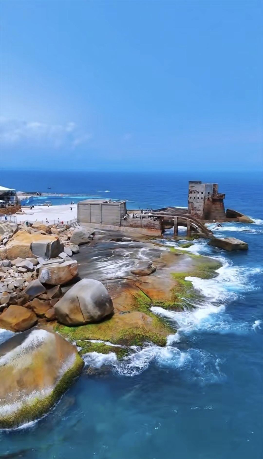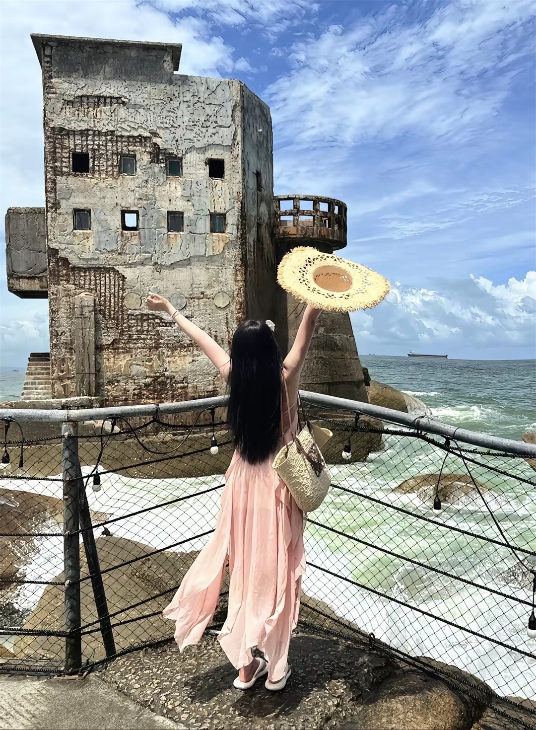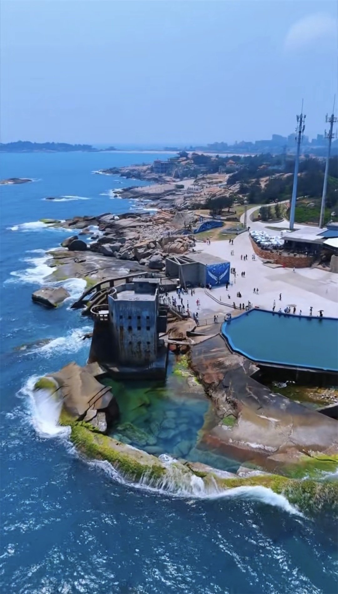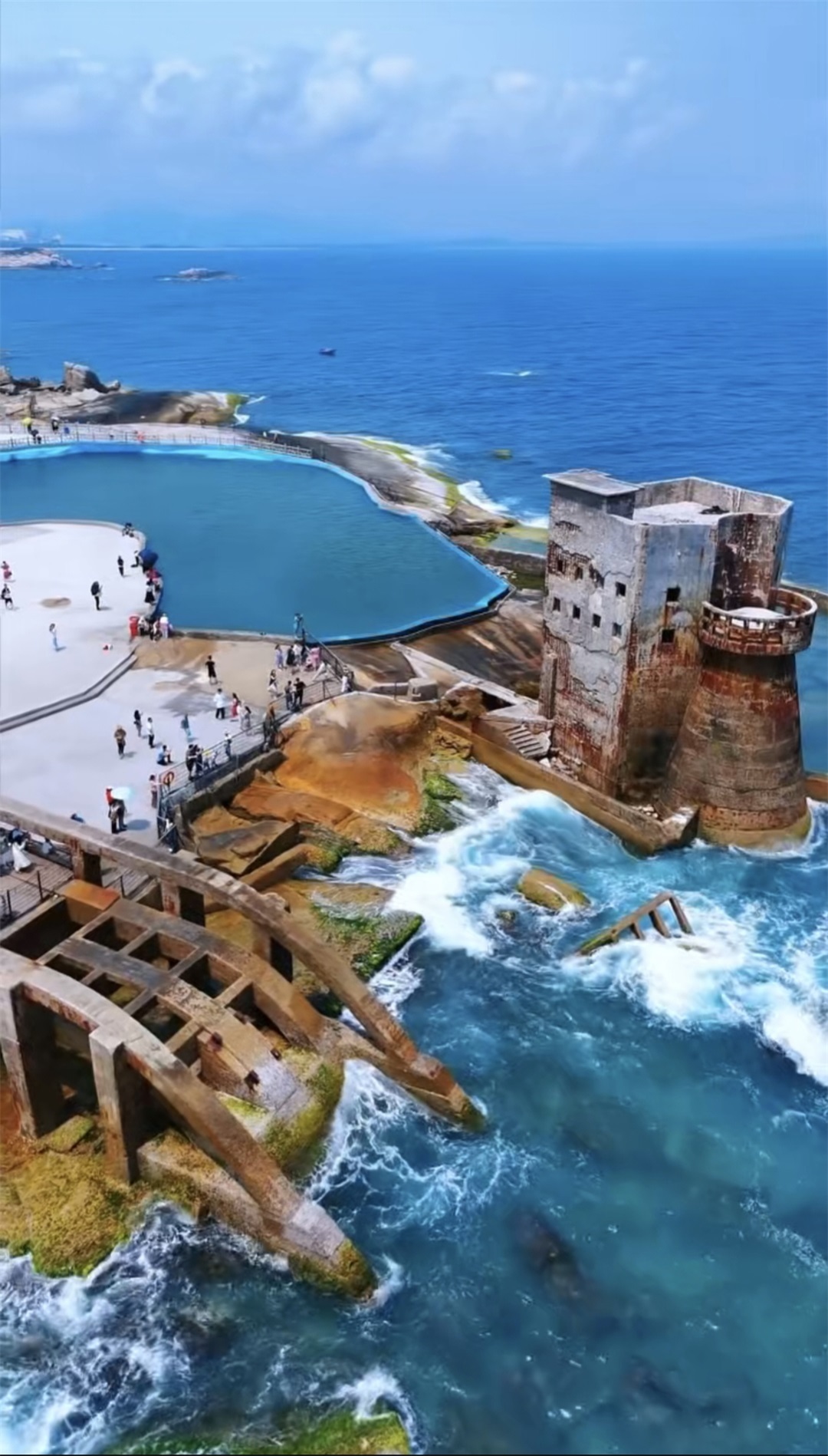 这里是一处人气爆棚的网红打卡点!是波浪能发电基地旧址,网友们称之为“海上古堡”、“烂尾楼”等,拍照特别出片,极好的地理位置,成就这座建筑的“网络红人”气场。楼下便是浪花岩礁,海浪一波接着一波,拍出阵阵响声,美妙动听。