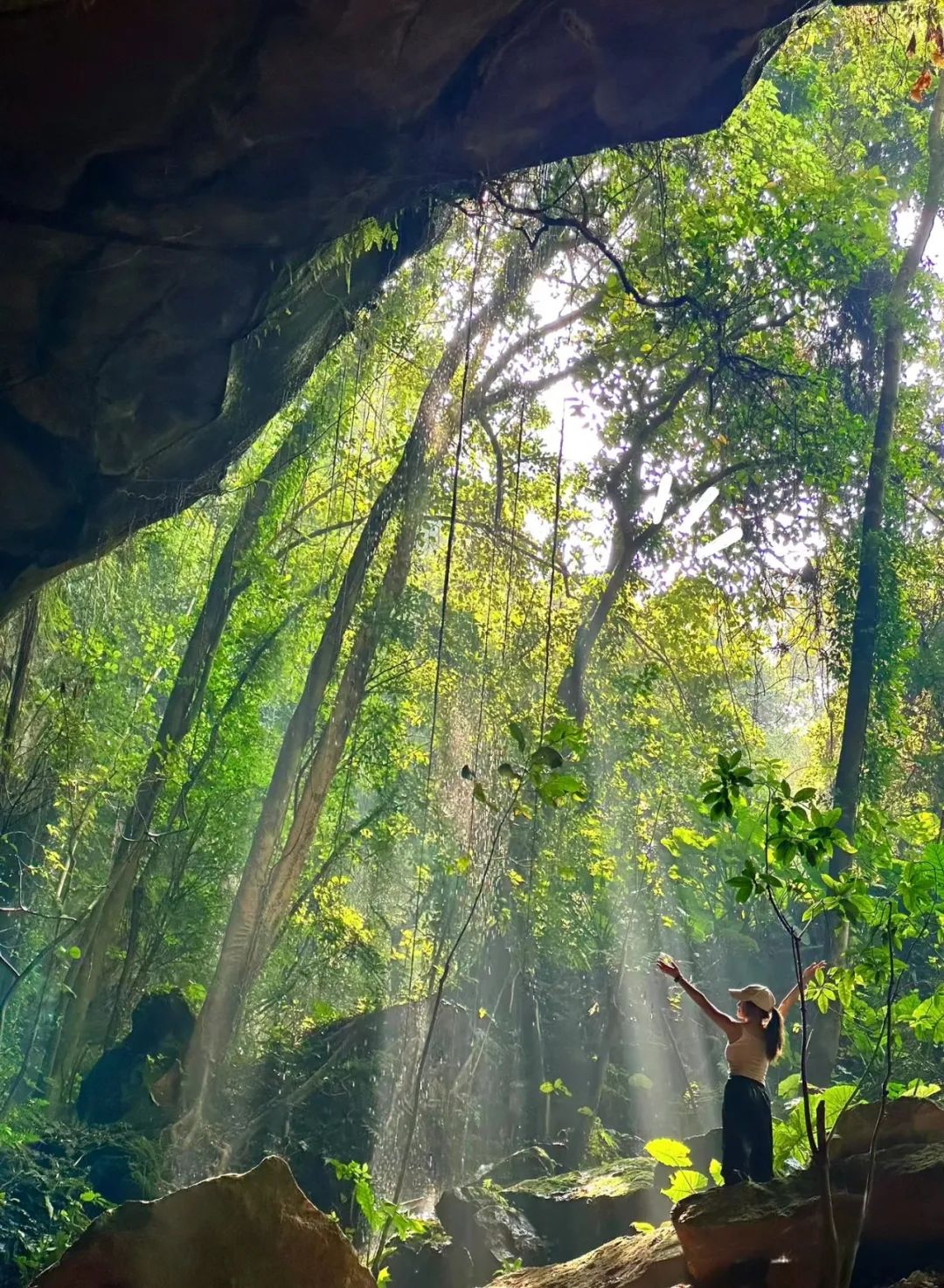 全程一共13洞,值得看的洞8天窗岩,拍合照的地方,大石头很出片,洞顶有一个方形凹陷;洞9黑岩,不起眼的小入口,一开始得蹲着进入,慢慢通道开朗,山洞很大岔路多容易迷路,路面湿滑,有很清但很深的水潭,注意安全;洞12波斯岩,也就是他们说的“耶稣之光”打卡点,阳光从洞口射入拍到丁达尔现象很美,今天的光线不够手动加光,注意此位置易有落石;