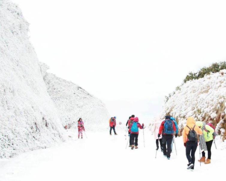 09:30左右到达云冰山,搭乘景区观光车上山(如下雪导致不能坐环保车费用不退),云冰山海拔约1500米,风景区主要是都庞岭、西峰岭、东边岭、葫芦岭四座山峰,与广东省连州市交界。景区内自然生态资源特点突出,以梦幻云海、浩瀚星空、古韵民宿、高山杜鹃、奇特冰挂、稀有苔藓、竹林溪谷等为主要核心旅游资源。被誉为华南的“避暑圣地”“人间仙境”“云海秘境”“南方雪乡”