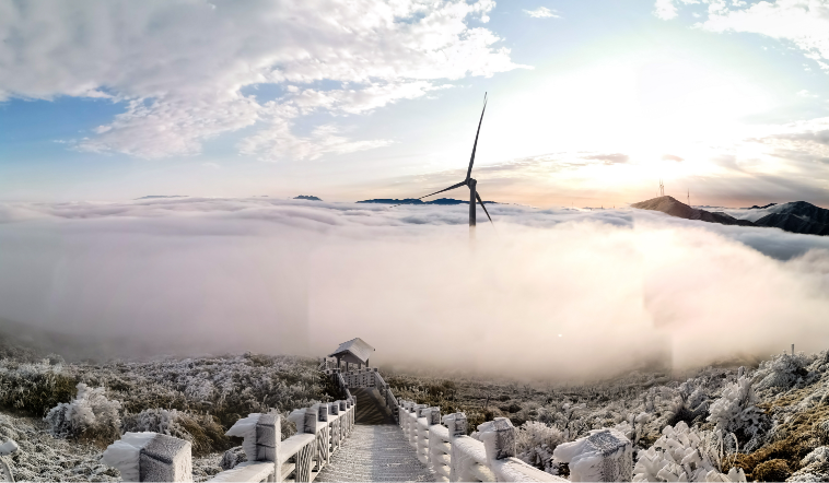 云冰山,位于湖南蓝山县南风坳区域与广东省连州市交界,海拔1400米,冬天的景色美得让人惊叹不已。