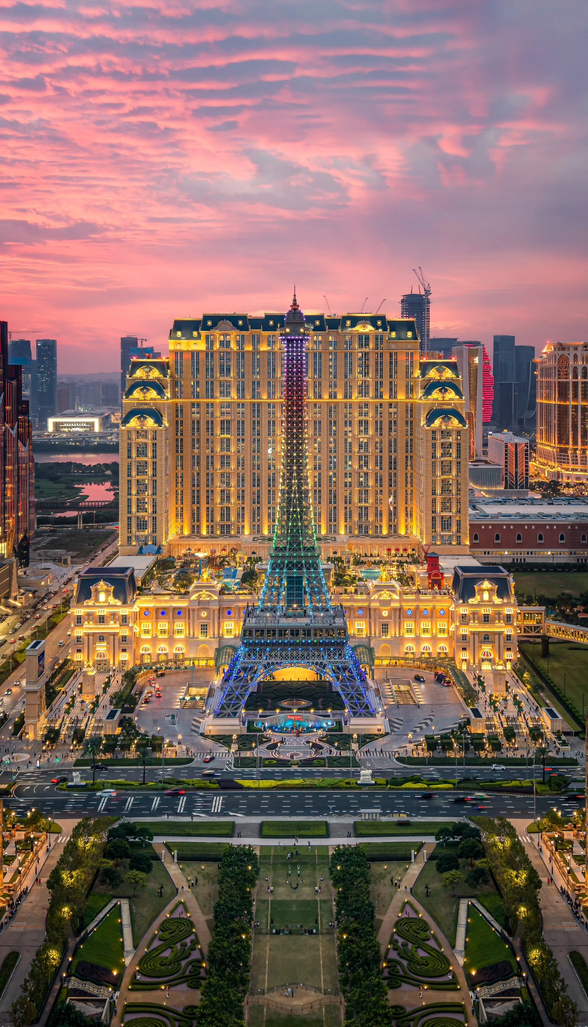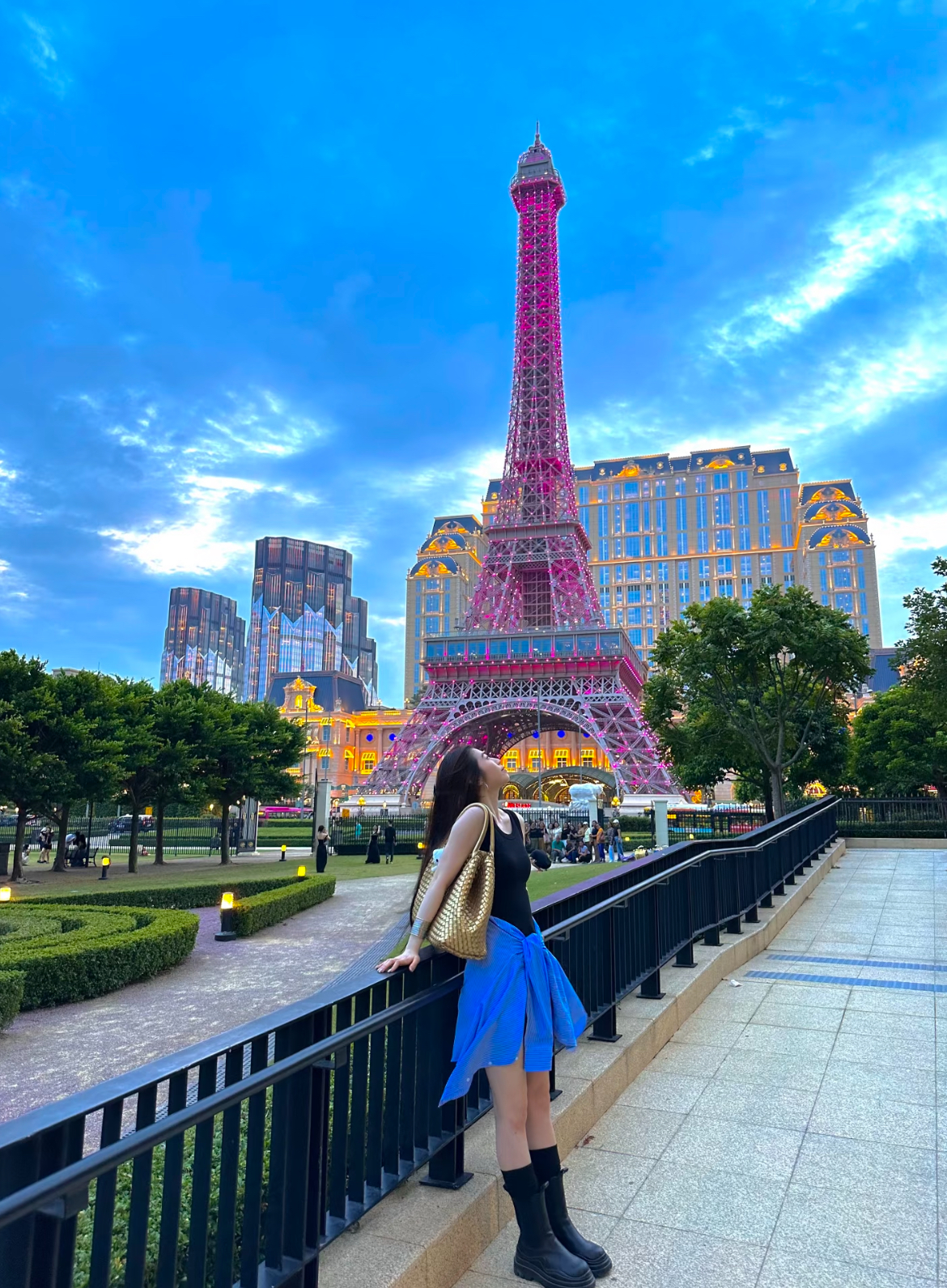 抵达【澳门巴黎人】(停留时间约 15分钟)巴黎铁塔依照埃菲尔铁塔 1/2比例建造,并设有超过 6,600只绚丽闪亮的景光灯,为您呈现浪漫璀璨的光影艺术,闪耀澳门夜空!