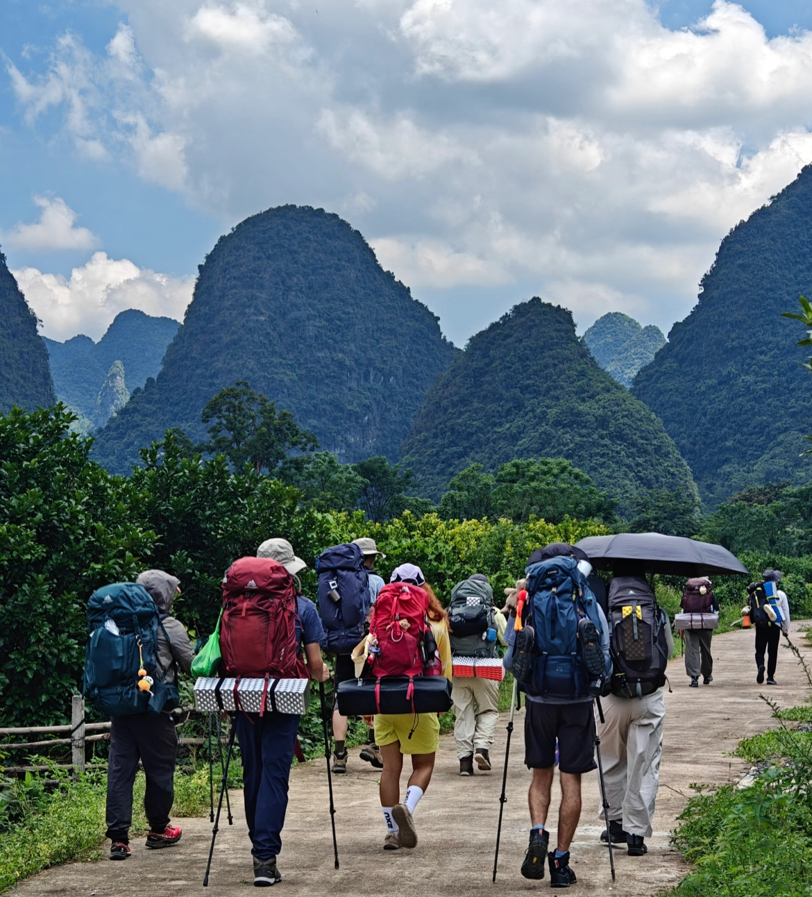 第一天:大巴出发 第二天:漓江精华段徒步全程18公里,累计爬升100m,累计下降100m,中间需坐船过河3次;老寨山看日落往返共2公里,累计爬升300m,累计下降300m; 第三天:罗田大岩溶洞徒步全程5km,累计爬升200m,累计下降200m;