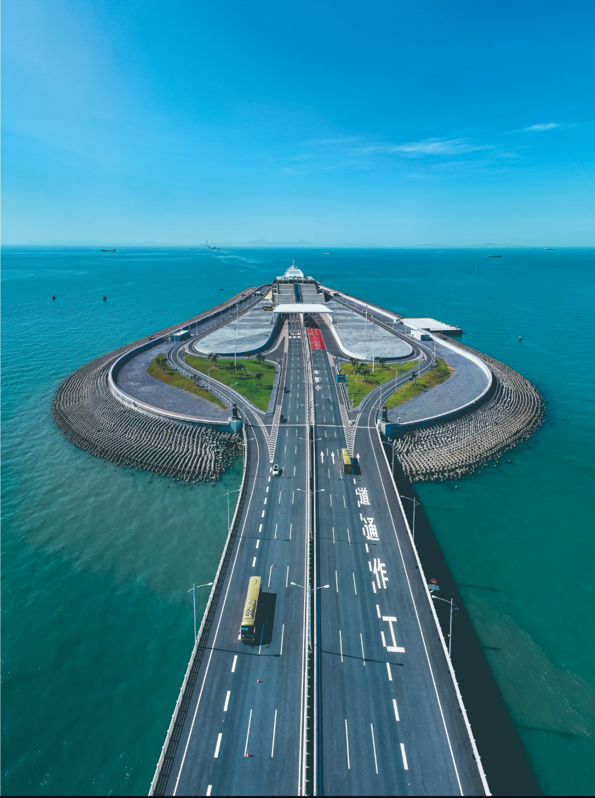>8:30 港珠澳大桥乘车抵达港珠澳大桥换乘“金巴”前往澳门,先后途经东西人工岛、海底隧道、风帆塔、中 国结塔、海豚塔等标志地点,一路见证天堑变通途的“现代世界七大奇迹”之一。港珠澳大桥连接香港、珠海和澳门的大桥、世界上最长跨海大桥。它还不只是一座桥,而是一座科研的“山”,屹立在东方,成为全世界桥梁领域的标杆,体现了一个国家逢山开路、遇水架桥的奋斗精神,体现了我国综合国力、自主创新能力,体现了勇创世界一流的民族志气。这是一座圆梦桥、同心桥、自信桥、复兴桥。