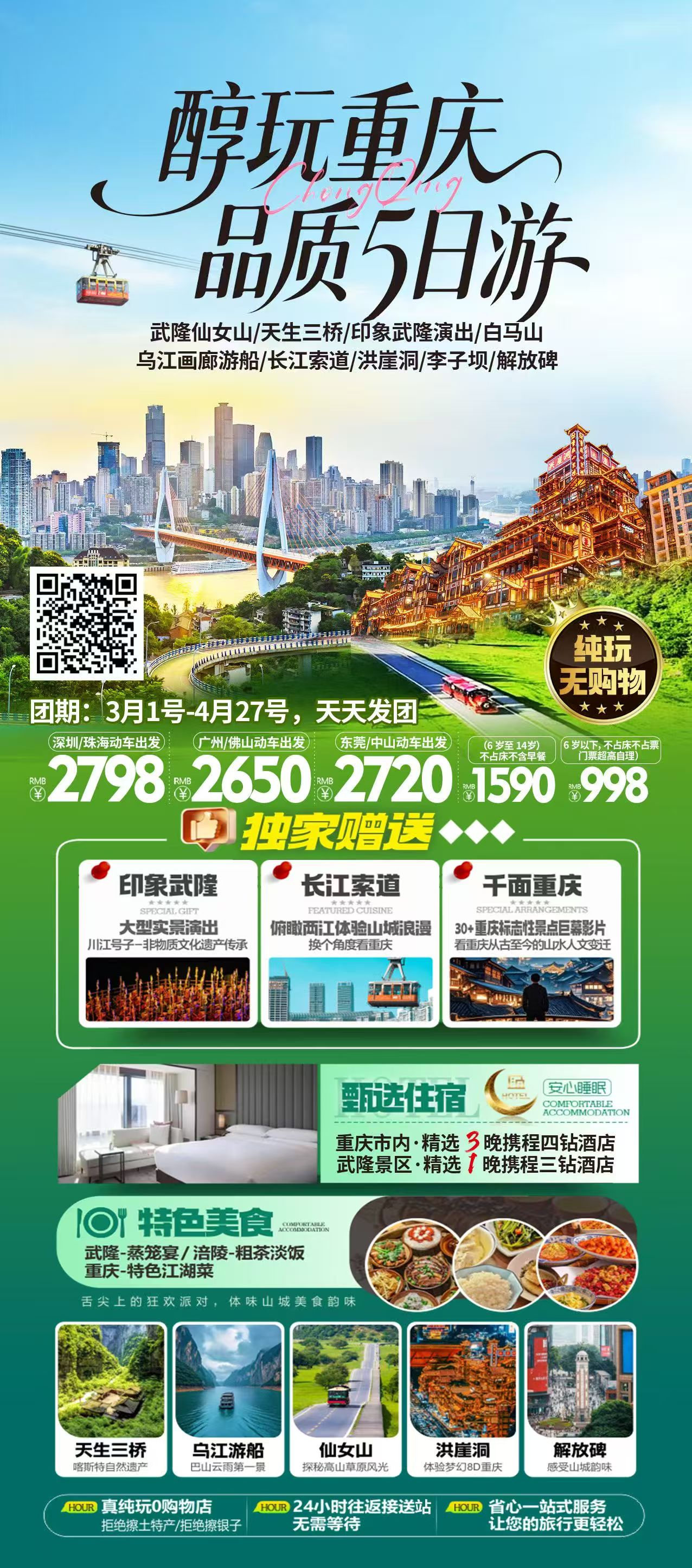 【醇玩重庆】武隆天生三桥、 仙女山 、 印象武隆、乌江游船、白马山、长江索道、千面重庆、李子坝 、白公馆、渣滓洞、解放碑 [复制链接]